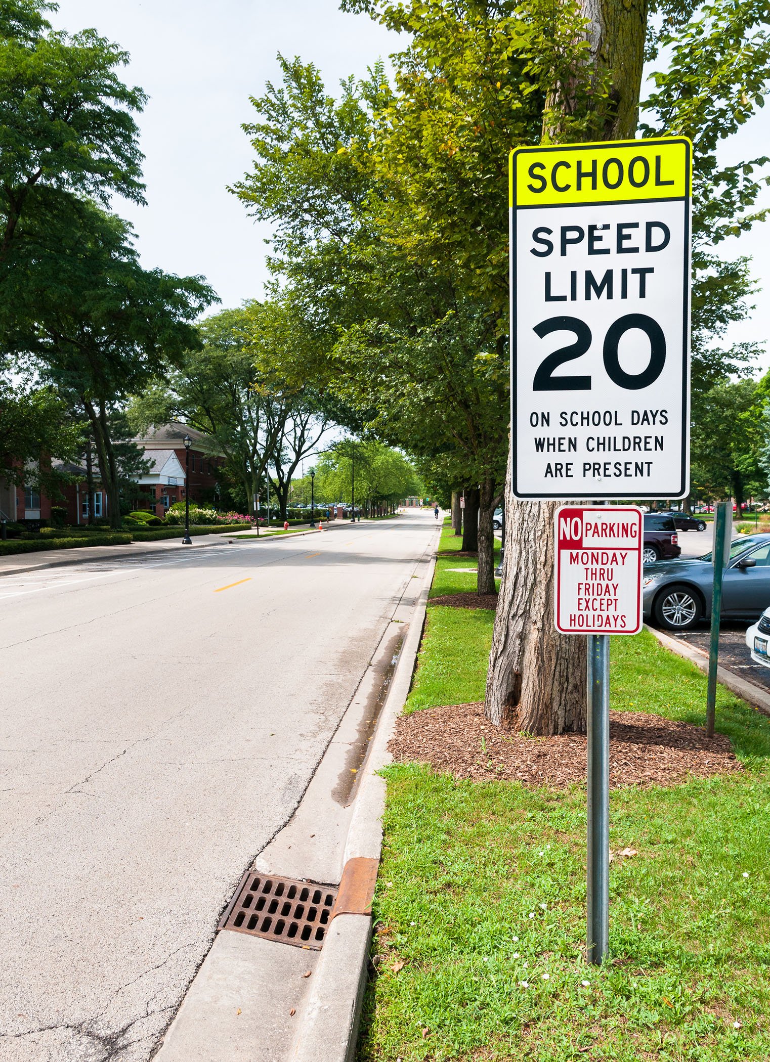 — Be aware of where school zones begin and end, and obey speed limit signs.