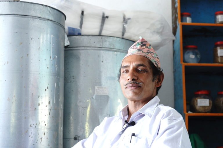 Banner Image: Nepali farmer Krishna Adhikari at his community’s seed bank in Maramche, Kaski. Image by Bhabishya Paudel