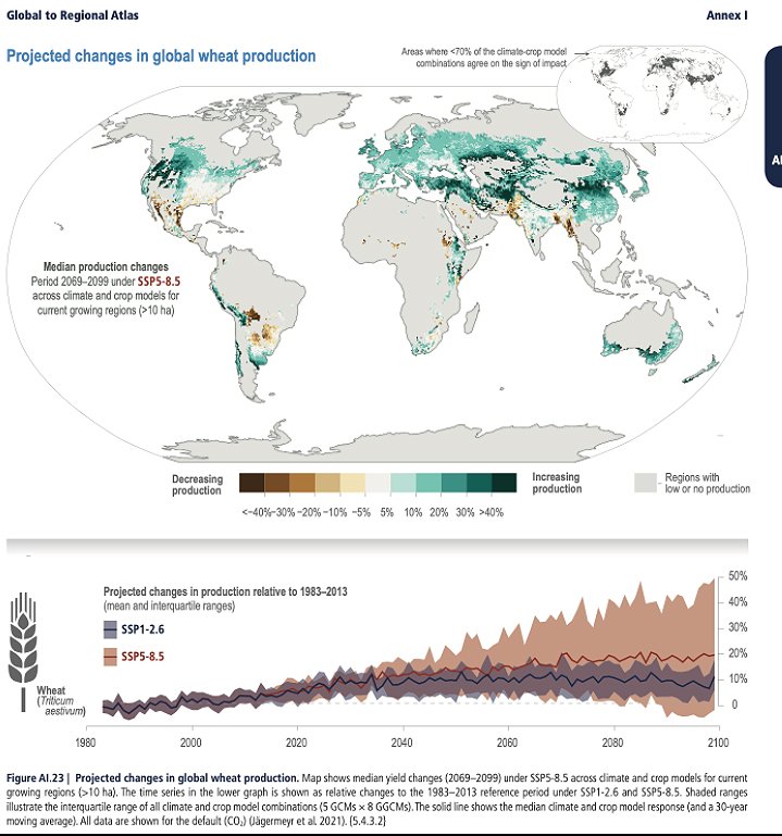 On the other hand, some studies suggest climate change may counterintuitively prove to be a boon to wheat production — at least in the short term. A 2021 paper found that while unchecked warming could cause as much as a 24% decrease in maize harvests, wheat yields could rise by 17% as higher latitudes become more suitable for cultivation.