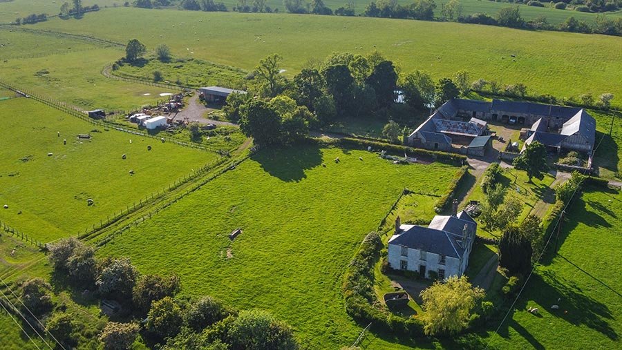 It includes 103 acres of Grade 3 pasture and arable land, a C-listed five-bedroom house and a traditional B-listed steading with a range of buildings.