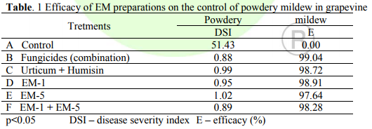 In this overseas trial which looked at the Control of Vine Powdery Mildew by the use of EM Preparations. The results showed that EM preparations were highly effective against powdery mildew under medium level of infection in the field conditions, and seem to increase wine quality and some sensry characteristic. Read the full report here
